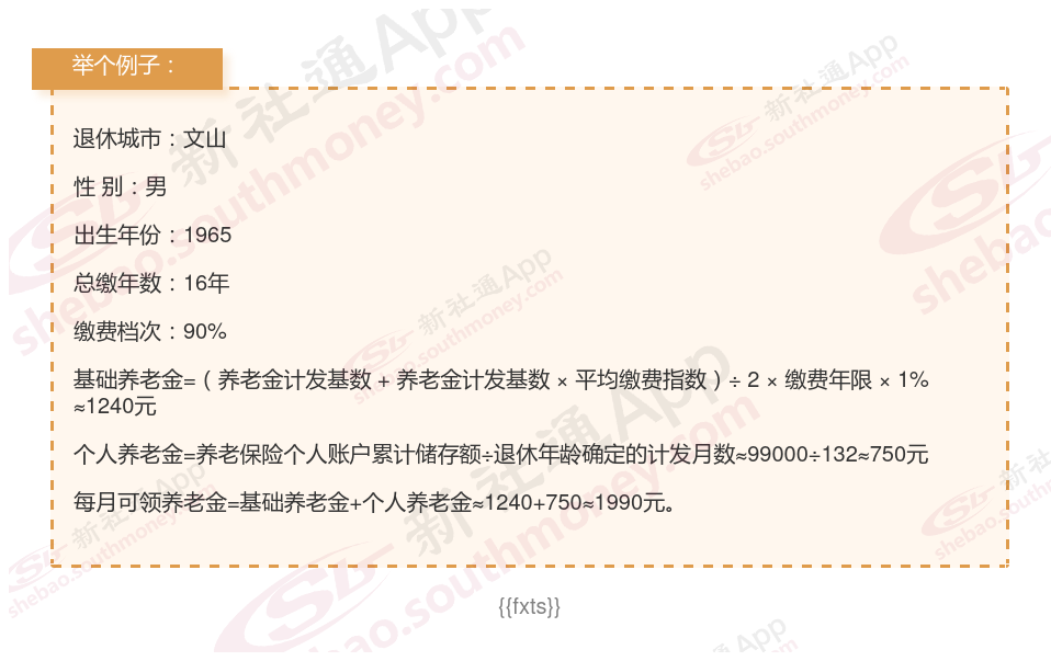 退休城市:文山,性别:男,出生年份:1965,总缴年数16年,缴费档次:90%