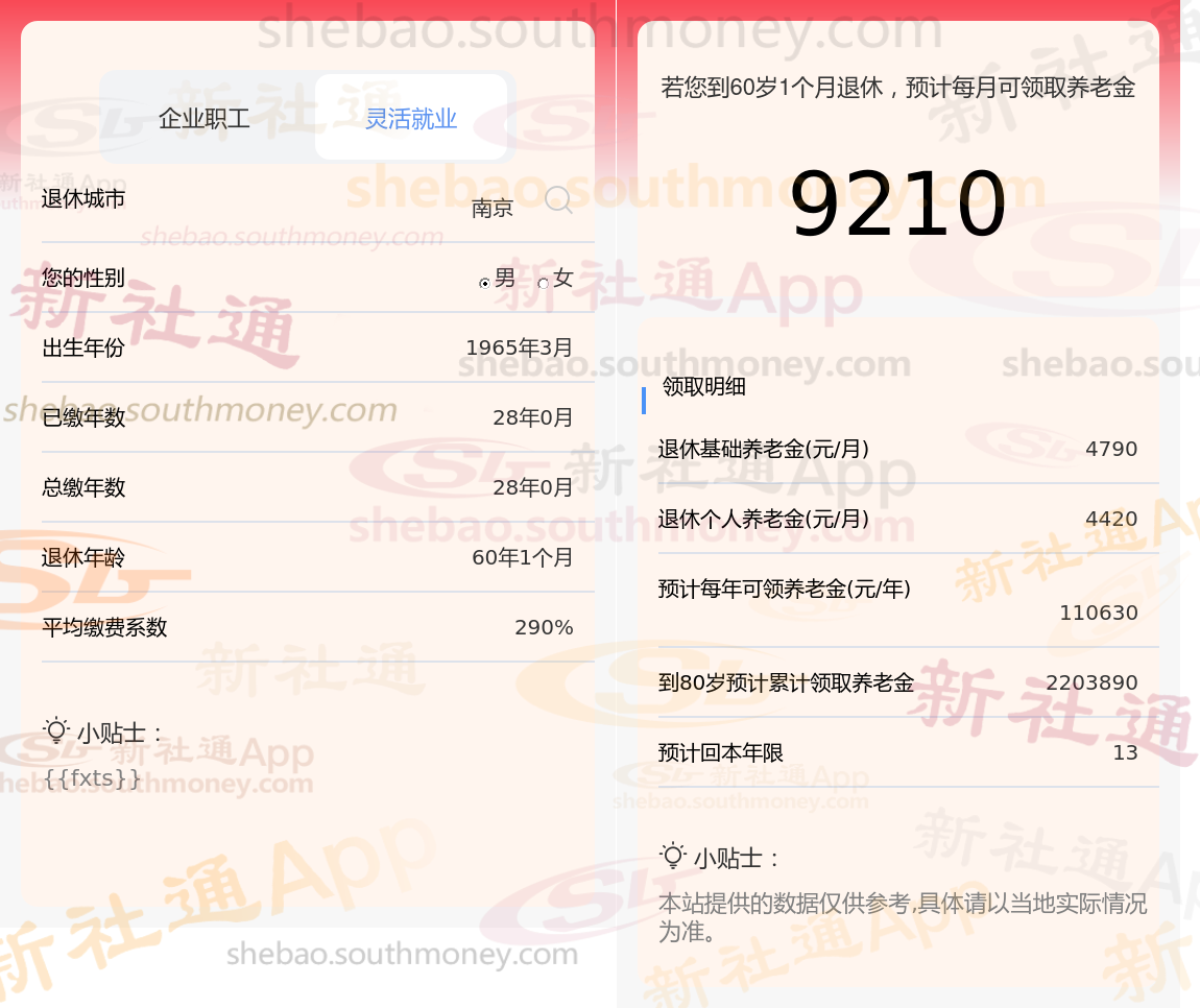 通过上面公式和新社通-app小编根据新社通app-社保缴费查询工具提供的最新数据一起来了解下,南京退休养老金怎么算?