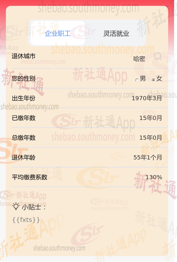 社评工资高的城市,能领取更多的退休金。 比如2023年,上海社平工资12183元/月,黑龙江社平工资6430元/月。 按60%基数缴费35年,上海基础养老金能拿3400元,黑龙江只有1800元,差了几乎一倍;如果按300%基数缴费35年,上海基础养老金能拿8528元,黑龙江只有4501元,数字差距更大。接下来新社APP带您一起看下例子,以我们新疆哈密为例: