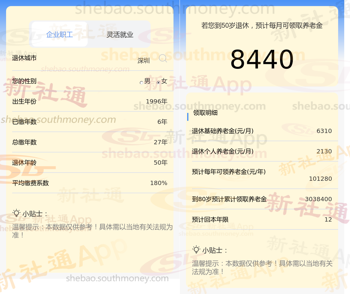 通过新社通APP-养老金计算所得:退休城市、出生年份、退休年龄、缴费系数都相同的情况下,社保缴费年限累计27年时,计算如下: