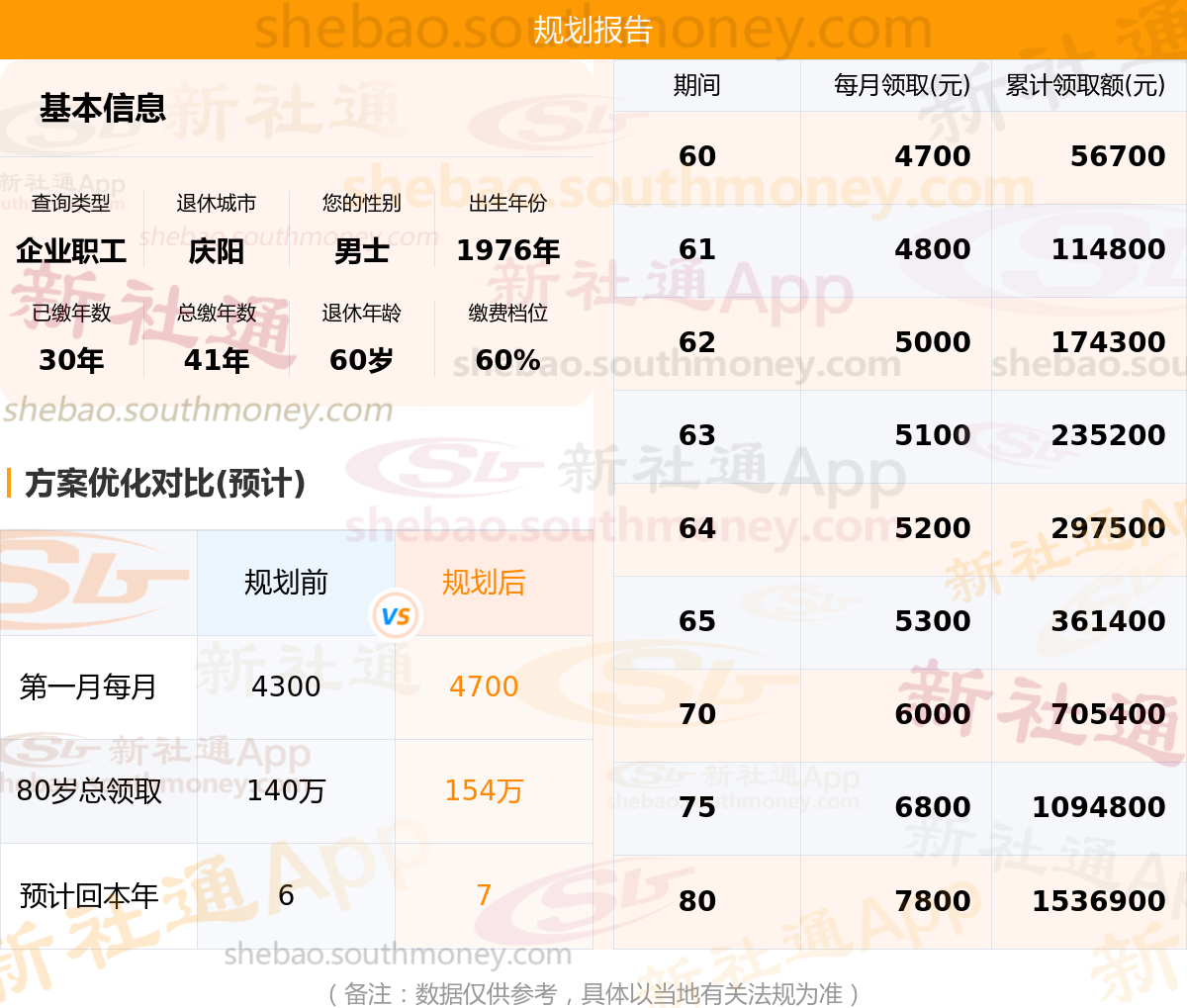 规划前:60岁退休后约领4300元,新社通APP-养老金规划后:60岁退休后约领4700元