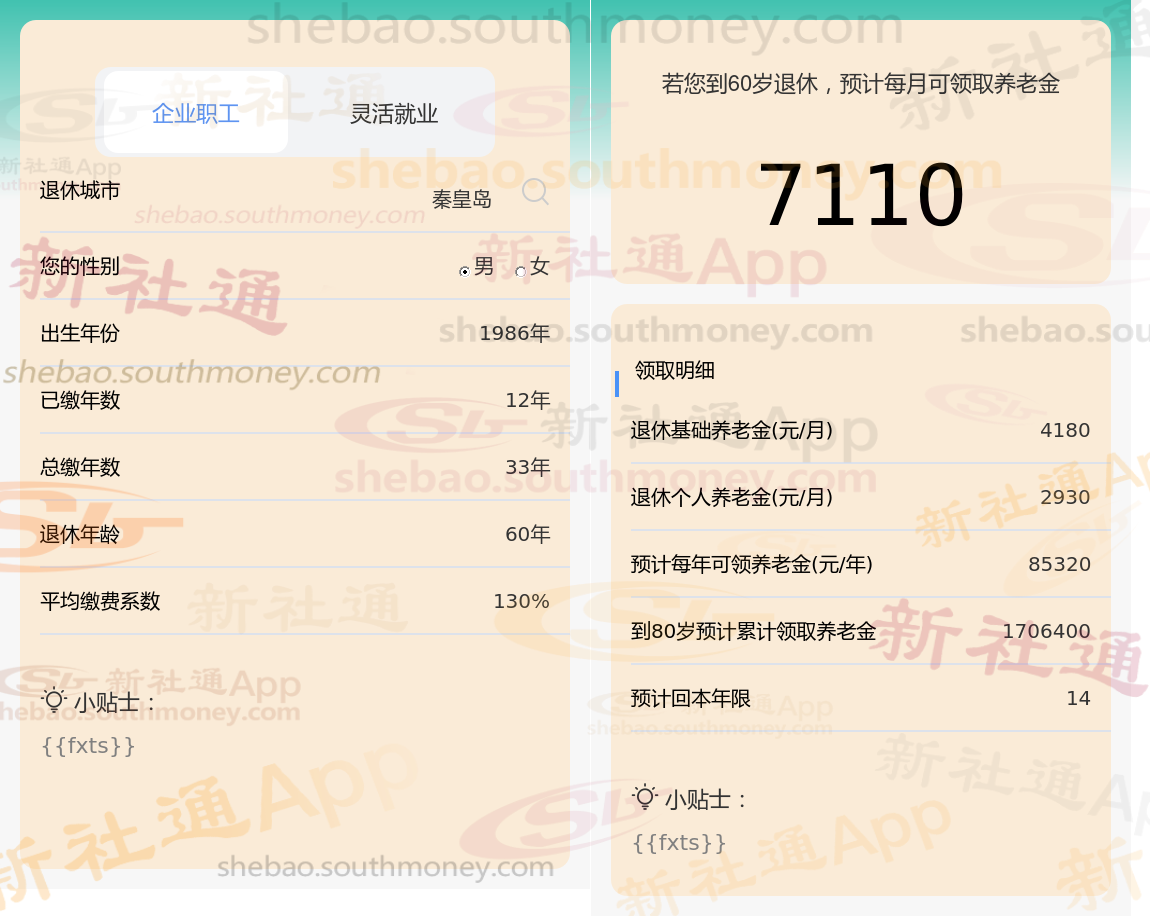 》点击新社通app养老金计算器,快算算你的养老金够不够花!