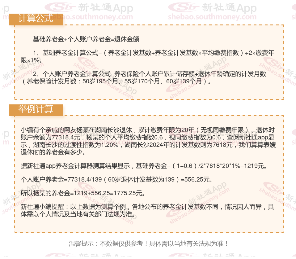 湖南长沙社保退休工资计算方法及公式2024年最新(附自动计算器)