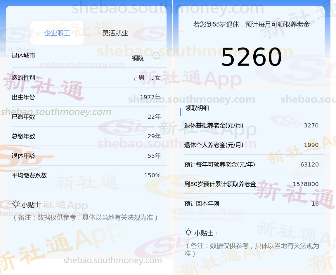 通过新社通APP-养老金计算所得:退休城市、出生年份、退休年龄、缴费系数都相同的情况下,社保缴费年限累计29年时,计算如下: