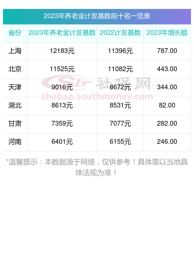 截至目前,2023年全国养老金计发基数排名前十名具体是多少呢?在这里简单分享一下: