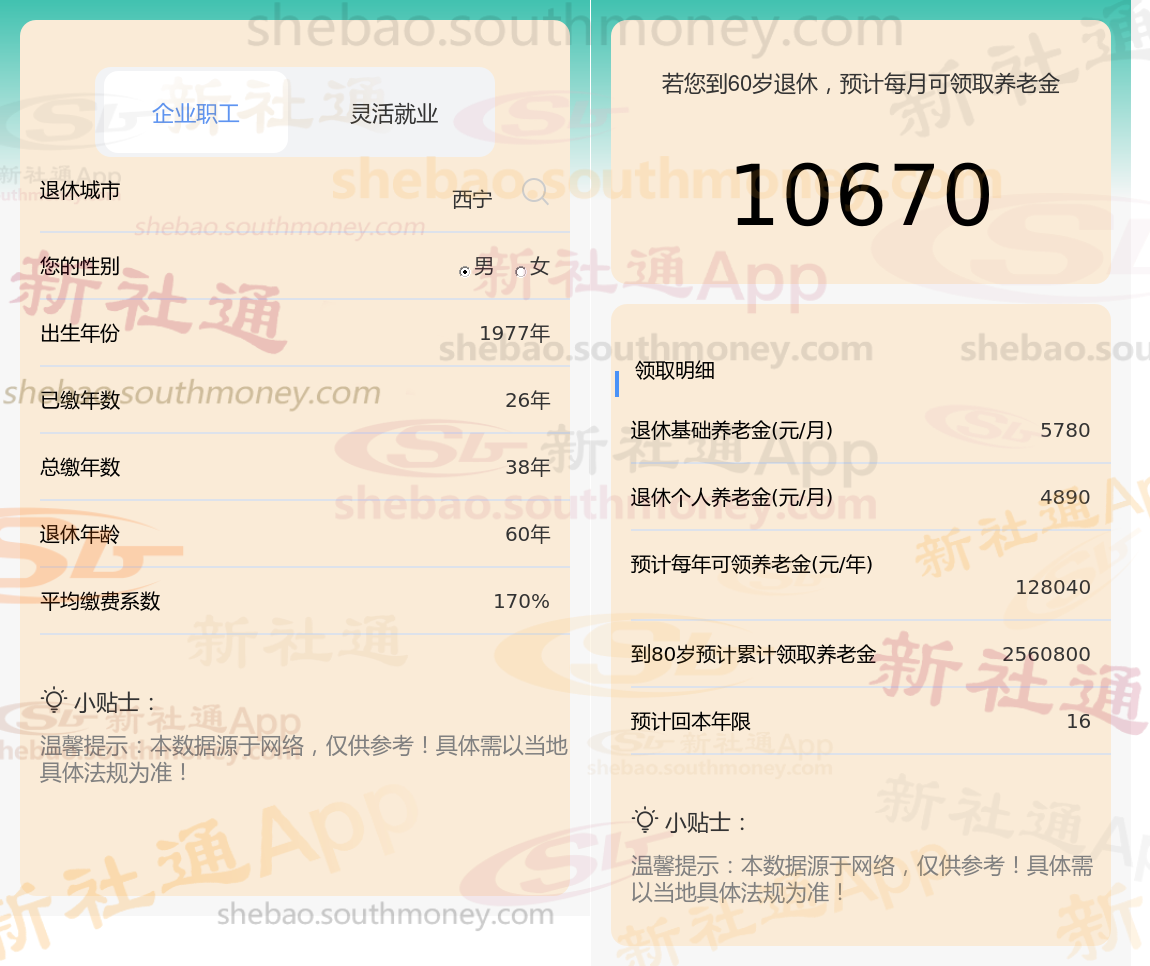 通过新社通APP-养老金计算所得:退休城市、出生年份、退休年龄、缴费系数都相同的情况下,社保缴费年限累计38年时,计算如下: