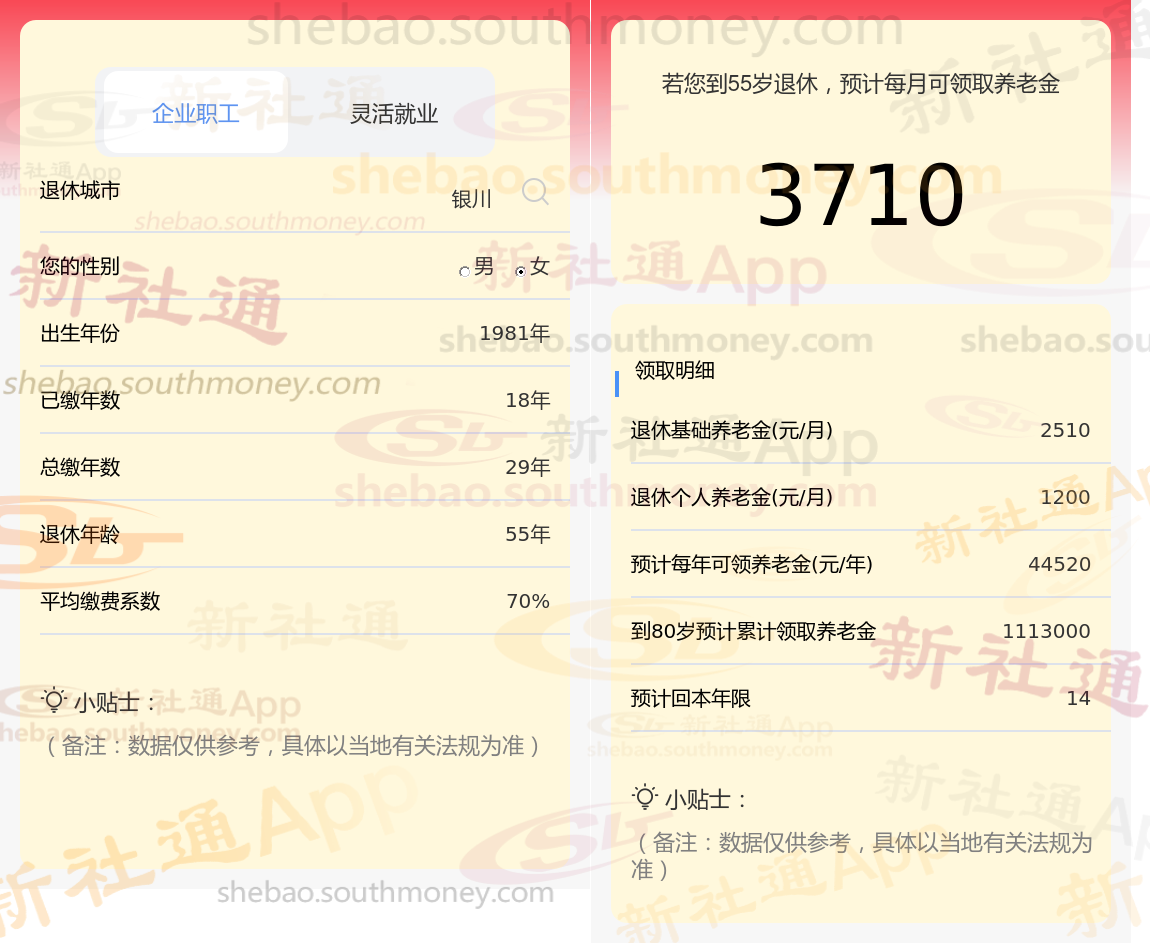 通过新社通APP-养老金计算所得:退休城市、出生年份、退休年龄、缴费系数都相同的情况下,社保缴费年限累计29年时,计算如下: