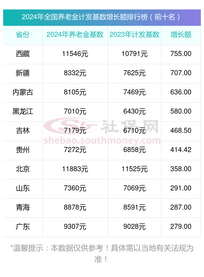 再来看看,全国各城市最新养老金计发基数公布前十名一览