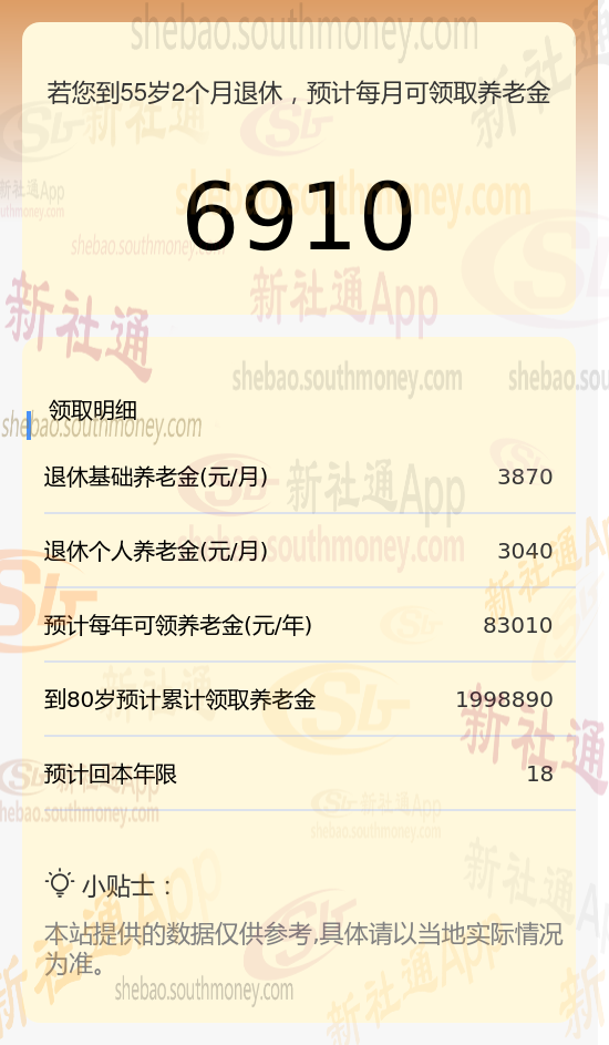 新社通app养老金计算器计算所得: