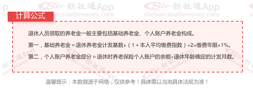 个人账户养老金:以个人账户储存额除以计发月数。计算公式为:个人账户养老金 = 参保人员退休时个人账户累计储存额 ÷ 计发月数。每月大约2010元。