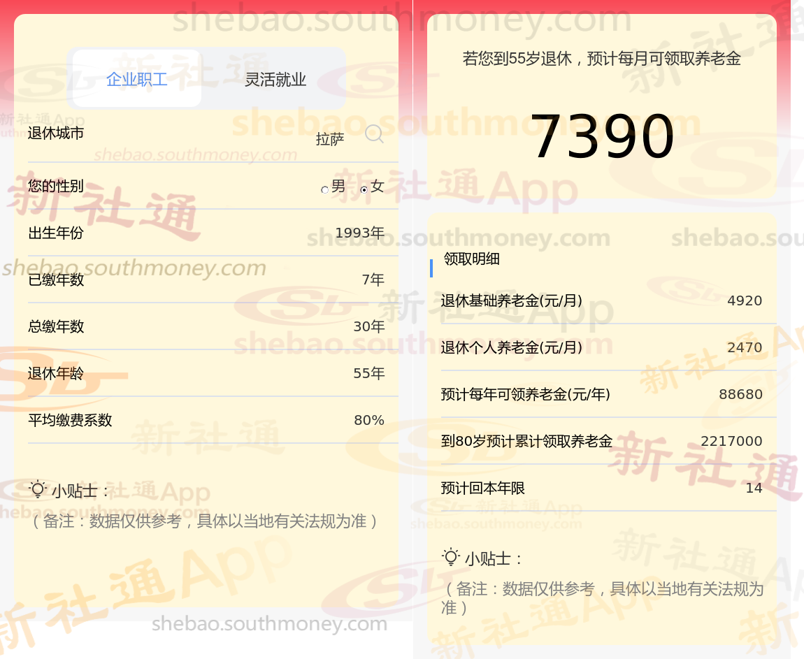 查阅新社通app显示,拉萨员工养老金计算公式