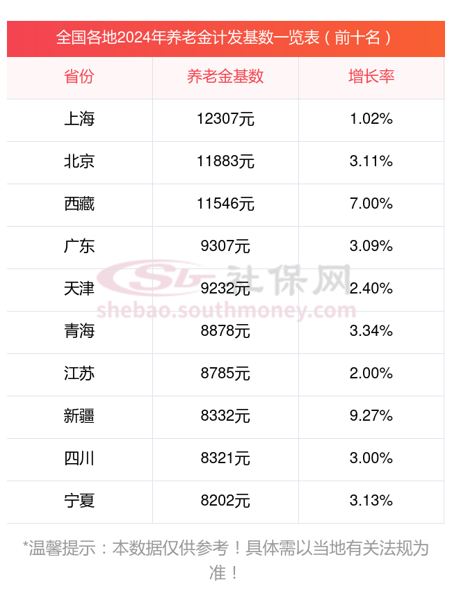 下面是已经公布2024年养老金计发基数的前10省份的具体情况