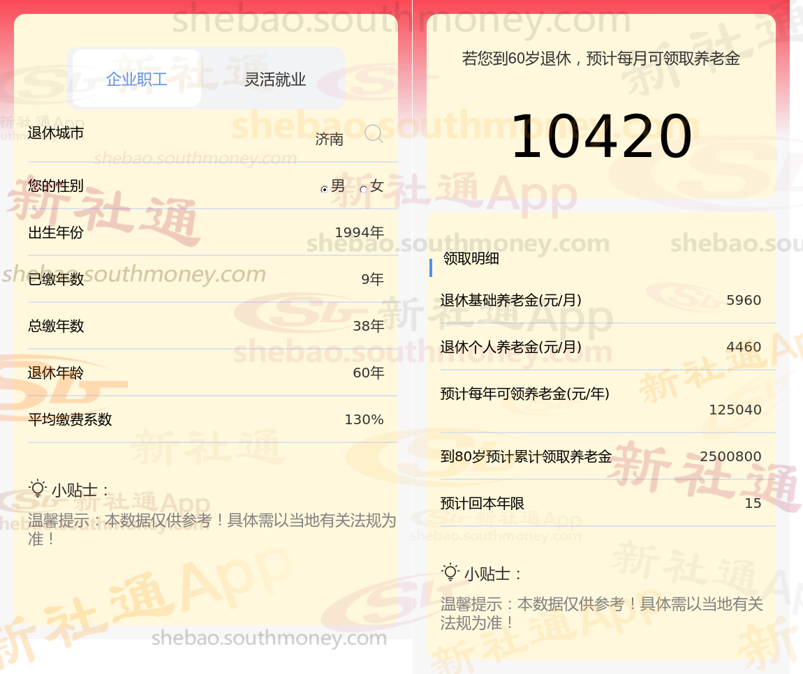 通过新社通APP-养老金计算所得:退休城市、出生年份、退休年龄、缴费系数都相同的情况下,社保缴费年限累计42年时,计算如下: