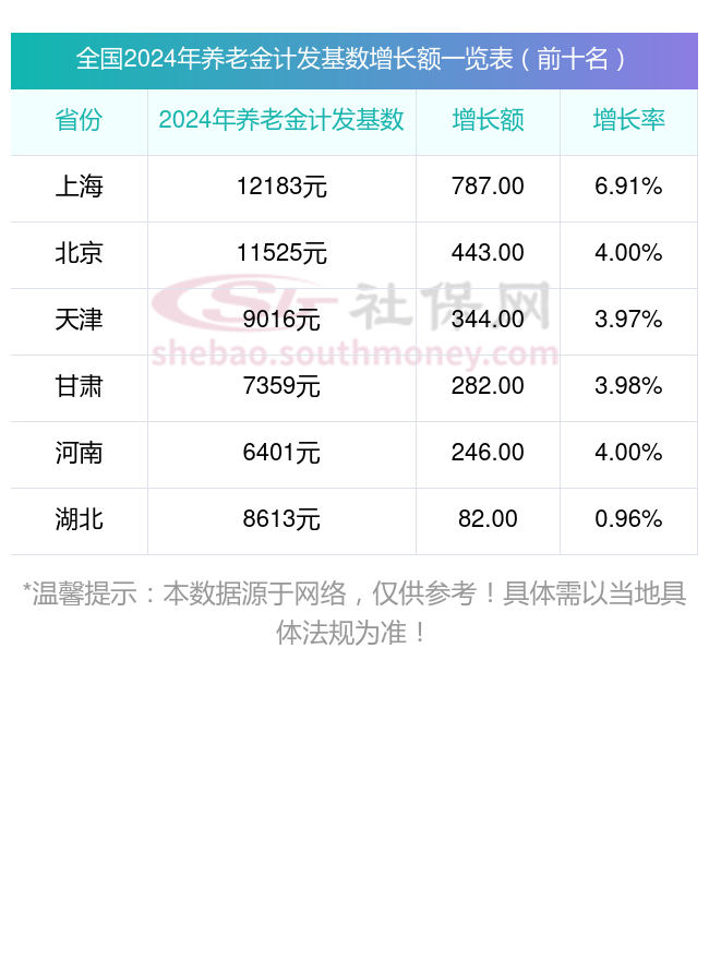 再看看,最新全国各地养老金计发基数排名前几的城市: