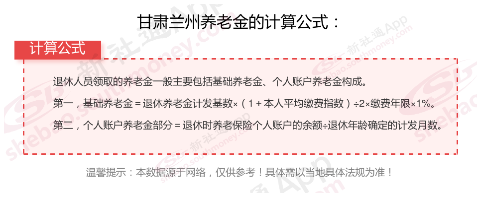 下面新社通一起来看下,以甘肃兰州为例(不考虑过渡养老金):