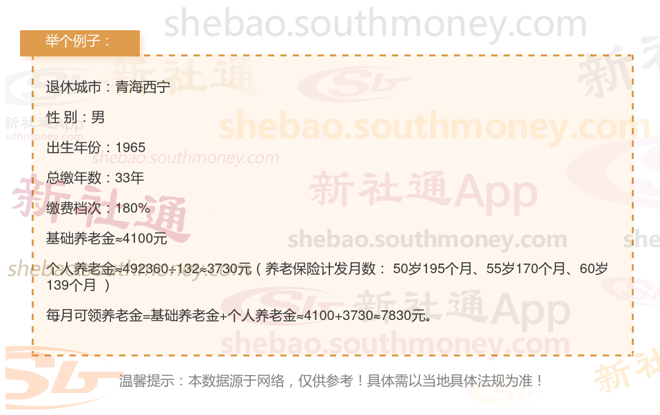 新社通app养老金计算器计算所得: