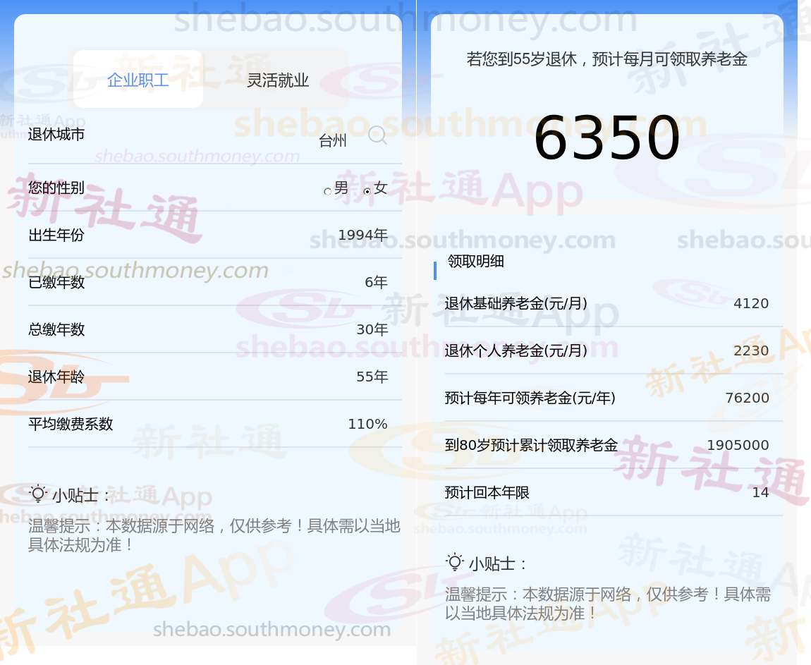 查阅新社通app显示,浙江台州退休人员养老金计算公式