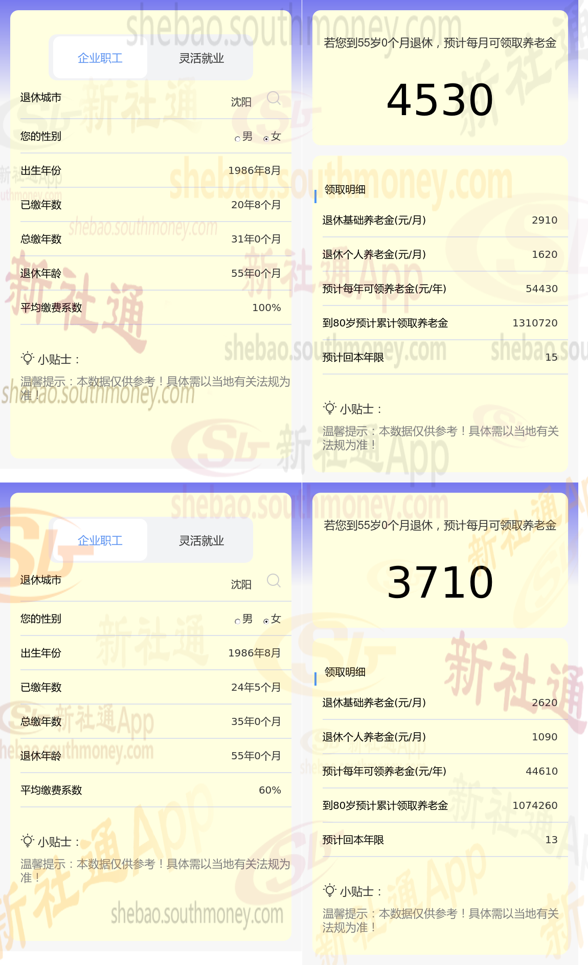 下面新社通-app小编一起来看下,以沈阳为例(不考虑过渡养老金):