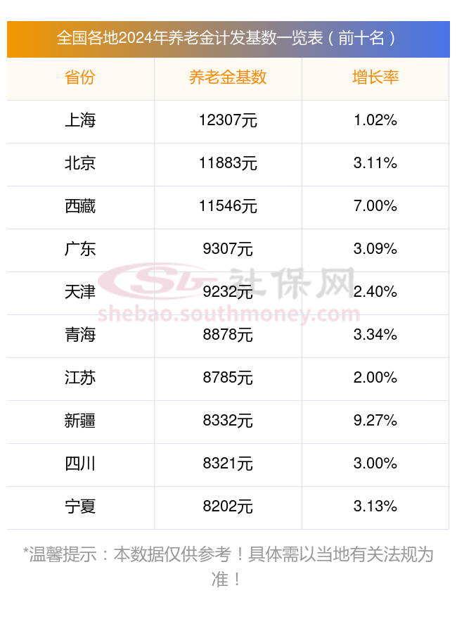 随着福建龙岩公布计发基数,大家都知道养老金计发基数目前在全国排名前几位的情况如何呢?在这里简单分享一下: