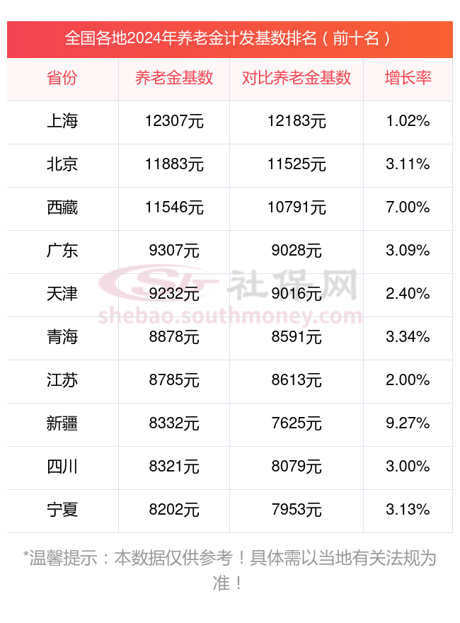 首先来看看,2023年全国养老金计发基数的前十省份一览表
