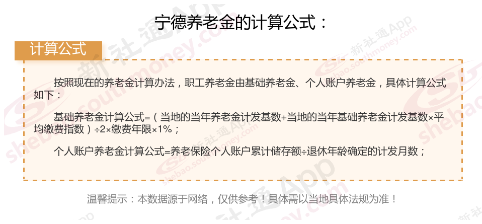 退休城市:宁德,性别:男,出生年份:1965,总缴年数32年,缴费档次:50%,新社通app养老金计算器所得: