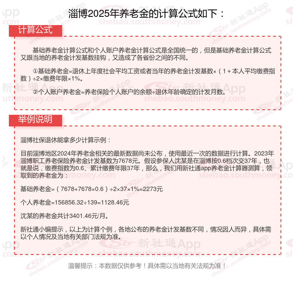据新社通app获悉: 淄博2025年退休能领多少钱的计算方法如下: