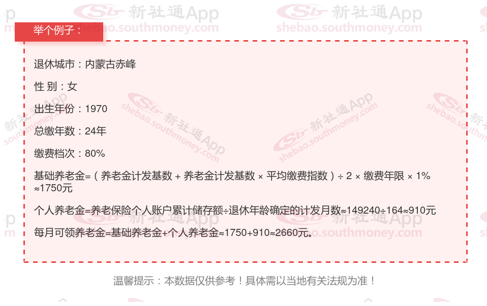 新社通app养老金计算器计算所得: