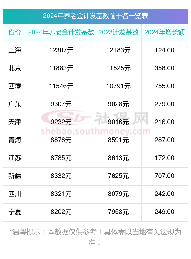 下面看看2023-2024年全国各地养老金计发基数排名前十