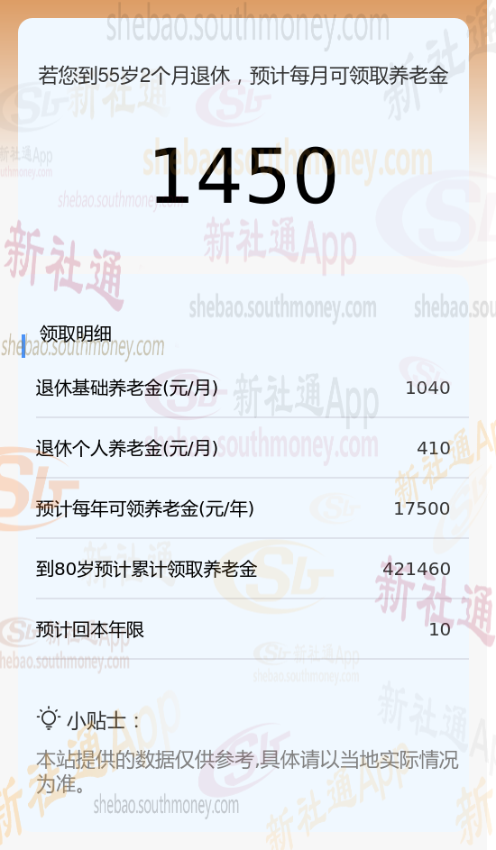 柯某,浙江杭州人,1970年出生,是一名拥有16载社保缴费年限的退休女性,缴费档次稳定在60%。岁月流转,她终于迎来了自己的退休时光。借助新社通app养老金在线计算器计算所得: