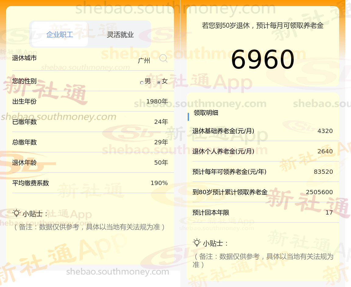 通过新社通APP-养老金计算所得:退休城市、出生年份、退休年龄、缴费系数都相同的情况下,社保缴费年限累计29年时,计算如下: