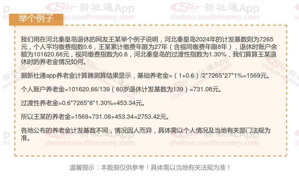 河北秦皇岛2025年退休能领多少钱的计算方法举例如下: