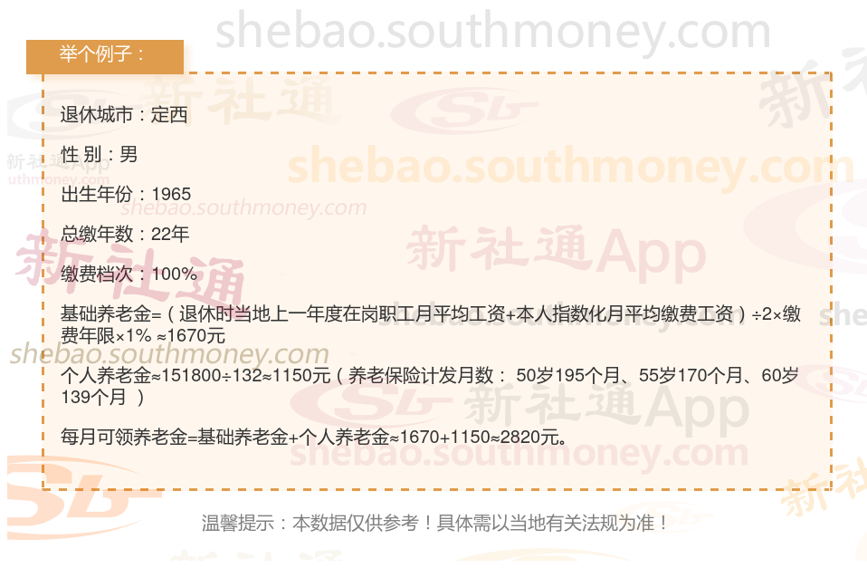 个人退休金:个人账户养老金=总共交的养老保险/计发月数。通过公式计算出每月大约1150元。
