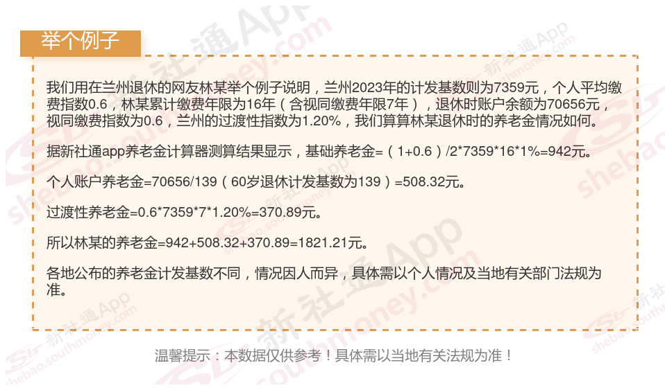 兰州2025年养老金的计算公式如下: