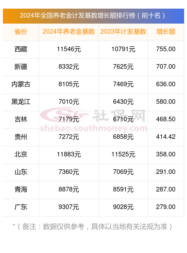 最后来看看,全国各地最新养老金计发基数前十名