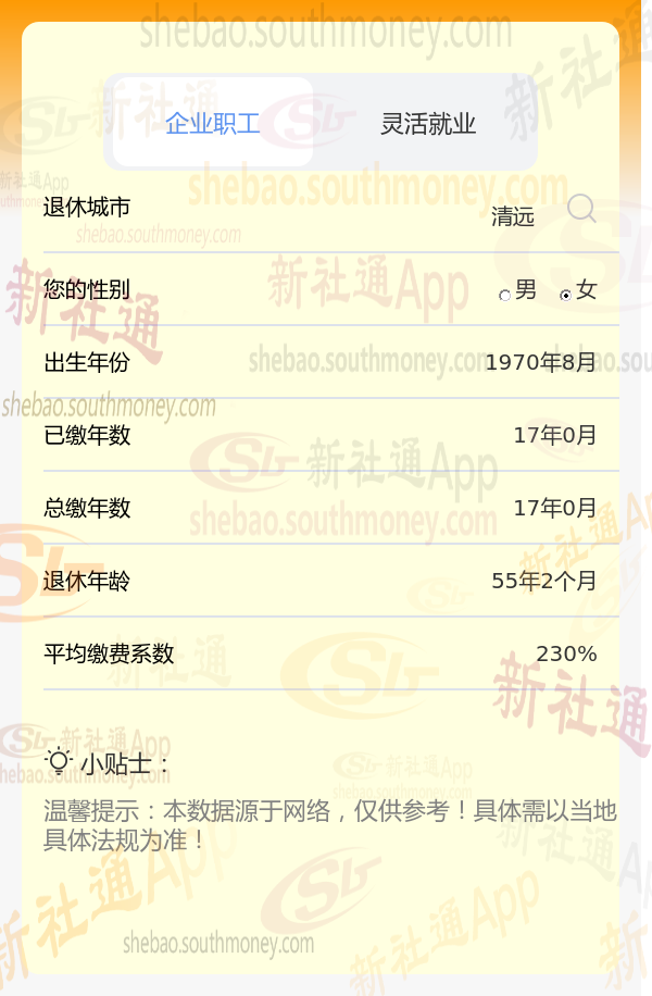 个人养老金计算结果:将上述数据代入公式,得出谢某的个人养老金为每月约1710元。