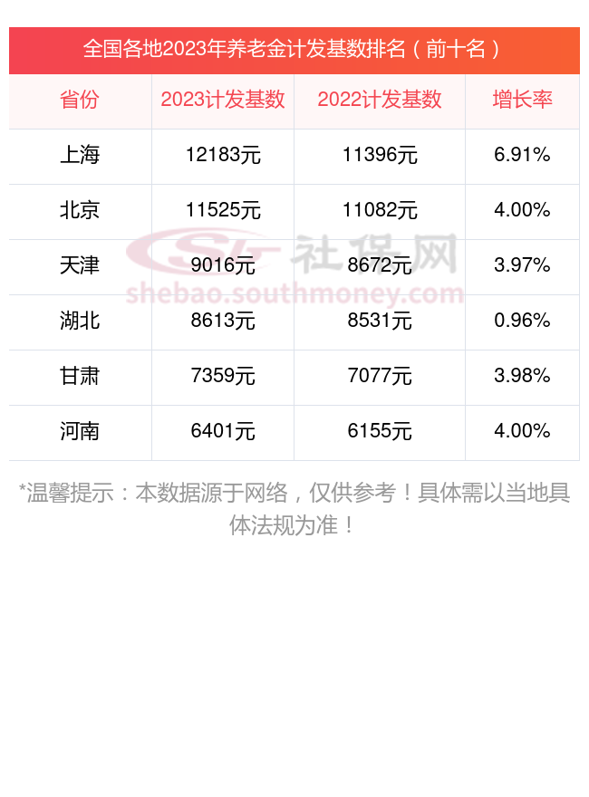 据新社通app显示,新乡2023年职工养老金计发基数终于迎来公布——年新乡企业职工养老金计发基数为6401元。比上一年增加246元,增长4%。