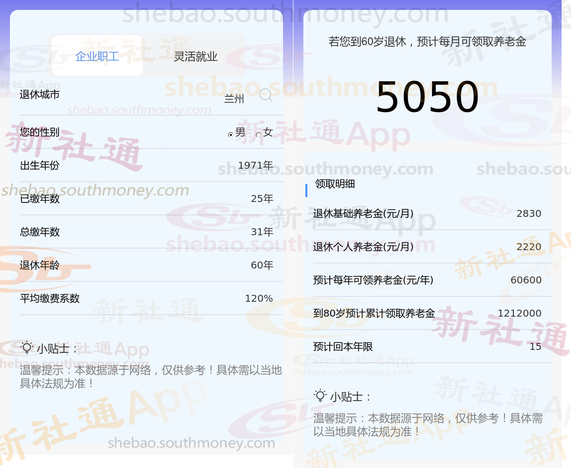 通过新社通APP-养老金计算所得:退休城市、出生年份、退休年龄、缴费系数都相同的情况下,社保缴费年限累计31年时,计算如下:
