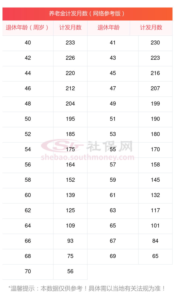 2024年养老金计发月数是什么?养老金计发月数一览表(最新)