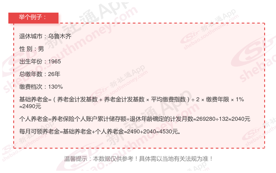 那么,乌鲁木齐社保交满26年每月领多少钱?在线计算器
