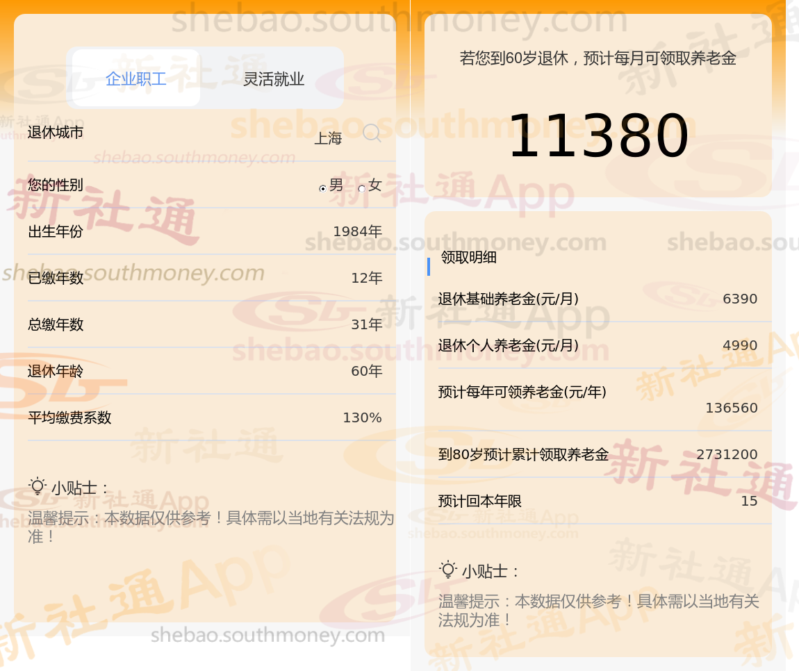》点击新社通app养老金计算器,快算算你的养老金够不够花!
