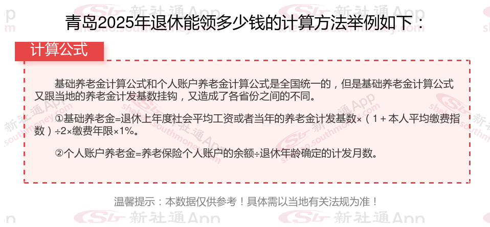 据新社通app了解,青岛2025年养老金计算公式是什么?
