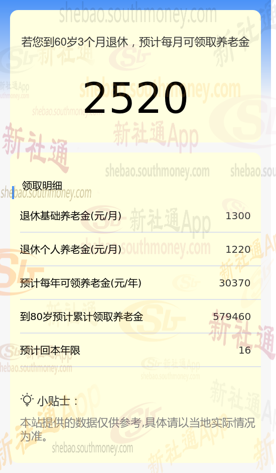 毕节15年社保社保退休金能领多少,每个人的养老金是不一样的。点击新社通app养老金计算器,轻松测算您的养老金!测算领取数额如下: