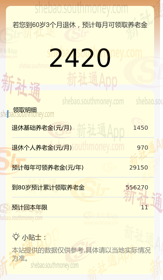 新社通app养老金计算器计算所得: