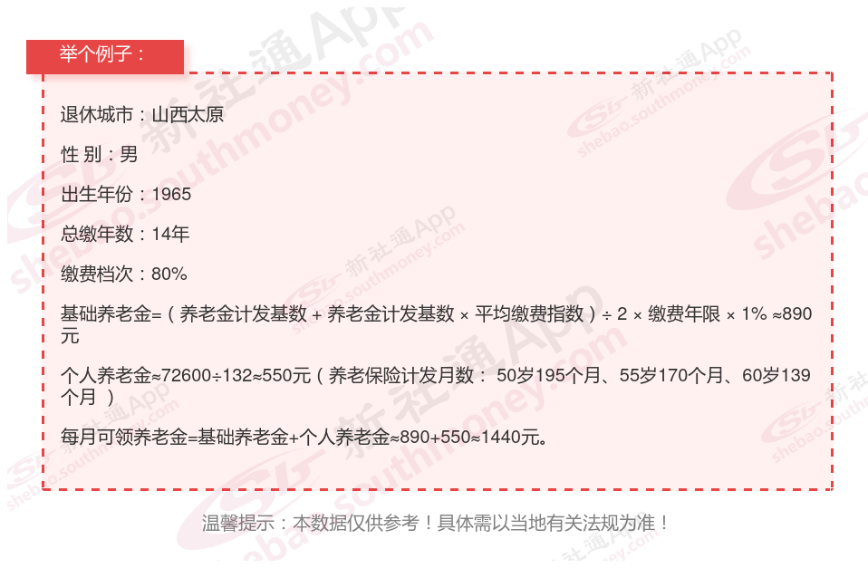 查阅新社通app显示:工作人员在退休之后也会有相应的退休工资,不过我们就要知道如何进行计算自己的工资。这点大家需要根据下面的内容介绍进行了解,才能对这个问题有清楚的了解。社保君整理了以下内容为您解惑,希望对您有所帮助。那么,山西太原工龄14年养老金一个月能领多少钱?山西太原养老金怎么交?