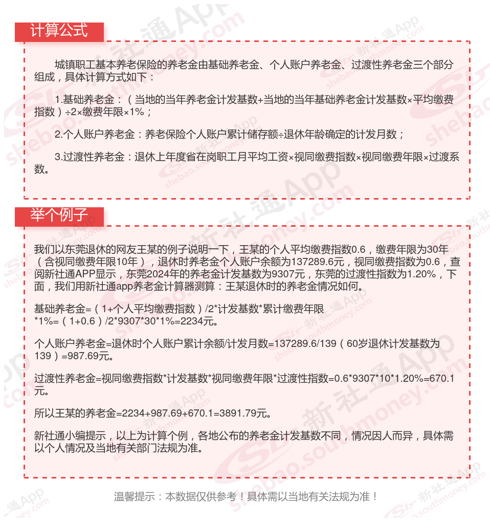 东莞退休工资养老金计算方法及公式2024年最新(举例说明)