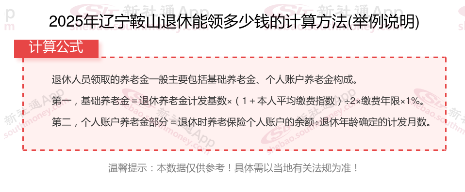 为了更加精确地了解自己未来每月能够领取的养老金金额,我们需要深入了解并掌握养老金的计算方法通过了解养老金的计算方式和影响因素,我们可以更好地规划自己的退休生活,确保生活质量不会因为退休而大幅下降。那么,社保交退休,每月能领取多少钱的养老金?下面随新社通app小编一起来看看辽宁鞍山2025年养老金计算公式。