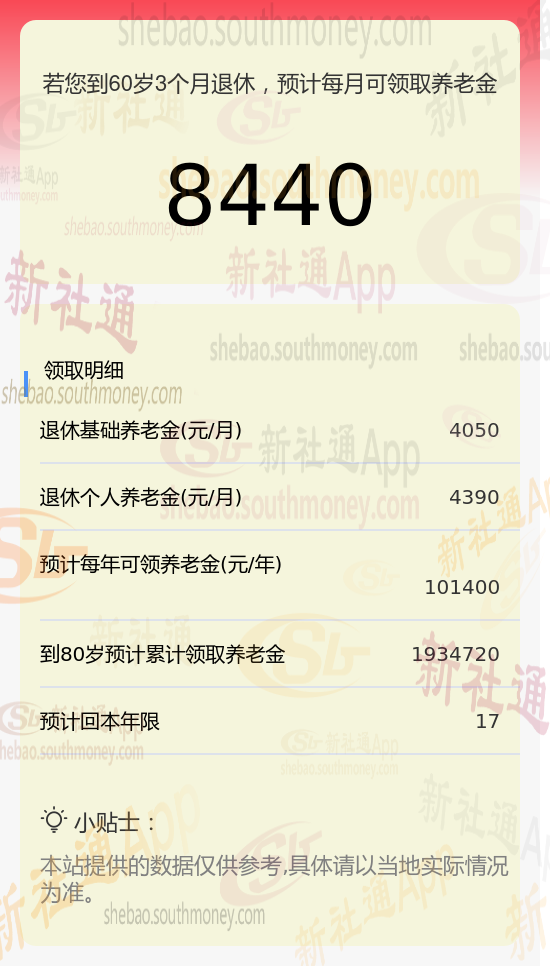 夏某,拥有长达29年的养老保险缴纳年限,其缴费档次一直维持在较高的290%水平。基于这些详细信息,我们使用了新社通app养老金计算器,并参考了当前的养老保险法规,对他未来的养老金进行了如下估算: