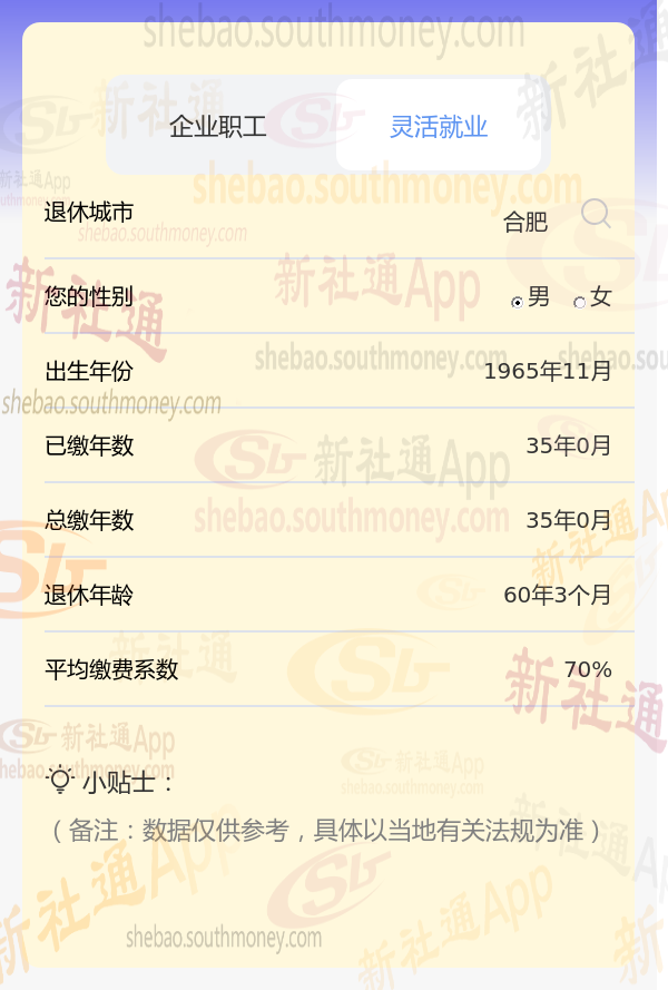 安徽合肥灵活就业养老金计算公式
