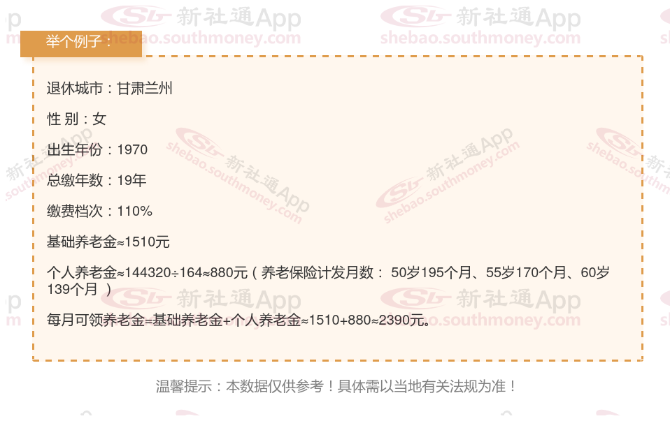 笔友秦某退休城市在甘肃兰州,性别:女,出生年份:1970,总缴年数19年,缴费档次:110%