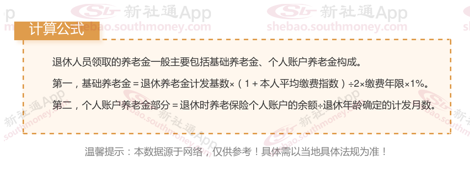 基本养老金计算公式为:(退休时上年度全市城镇单位就业人员月平均工资+本人指数化月平均缴费工资)÷2×缴费年限×1%。每月大约4620元。